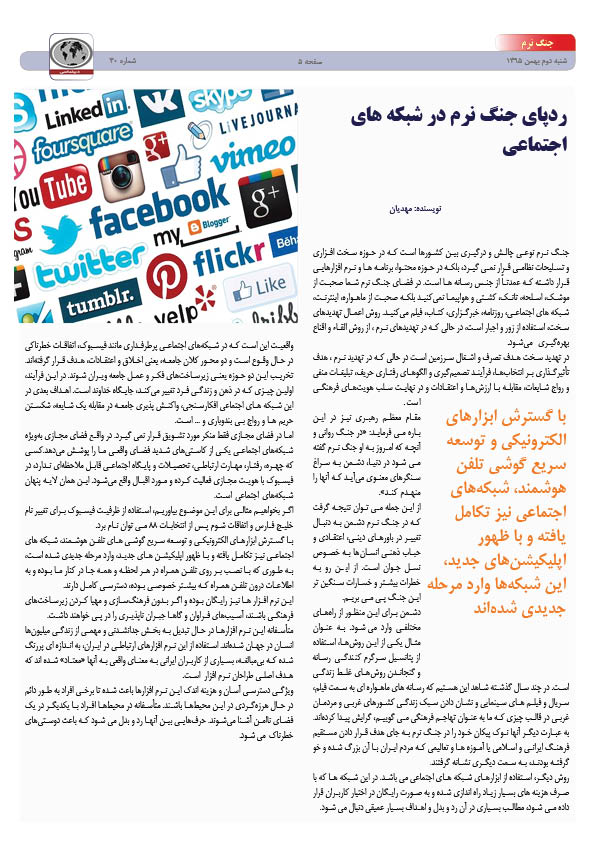 شماره سی اُم ویژه نامه دیپلماسی درباره مهمترین تحولات منطقه ای، دیپلماسی رسمی، دیپلماسی عمومی، جنگ نرم و دوربین دیپلماسی، منتشر شد.