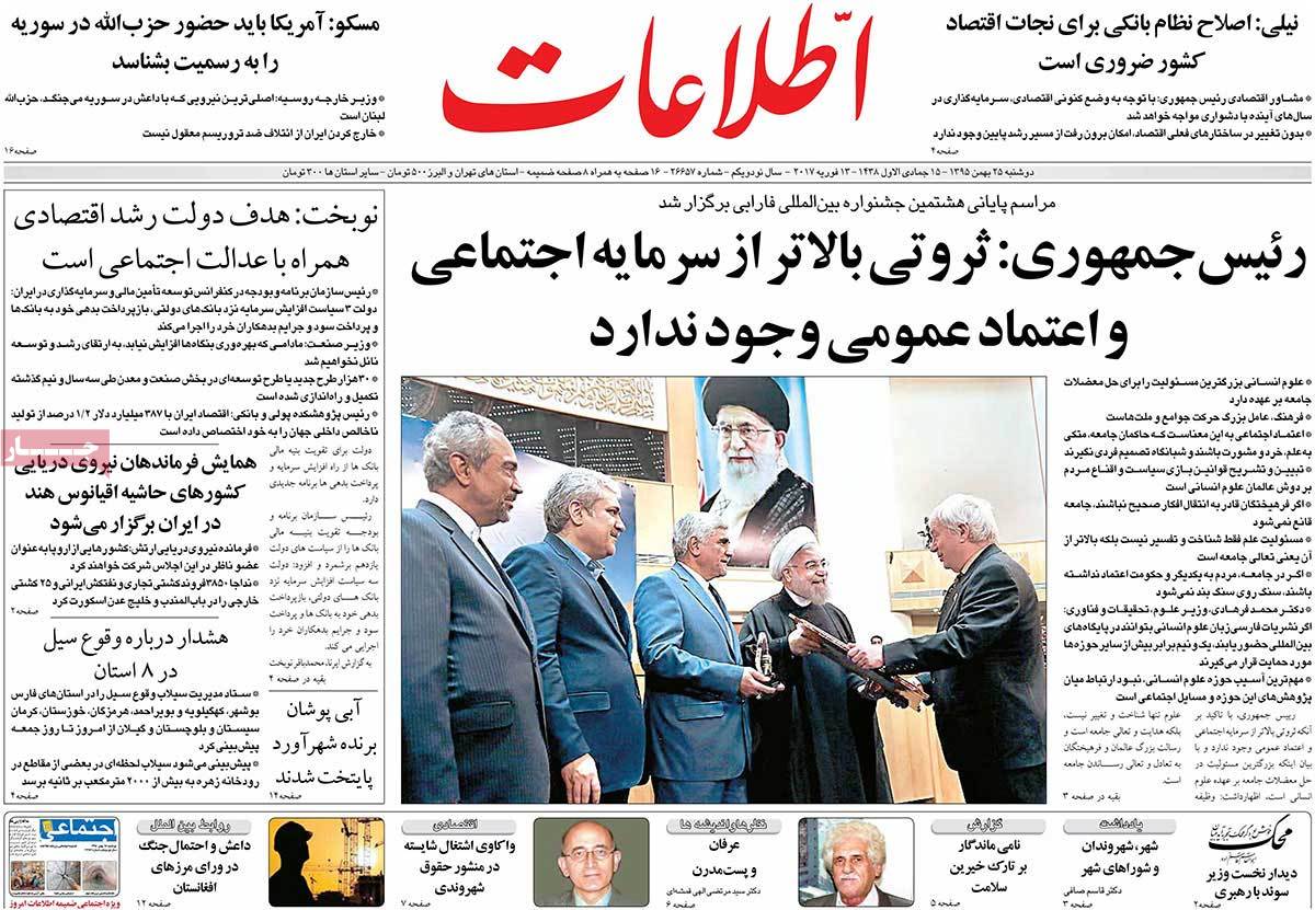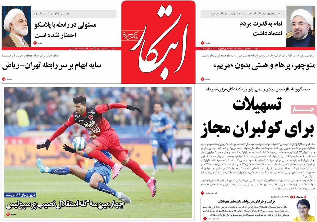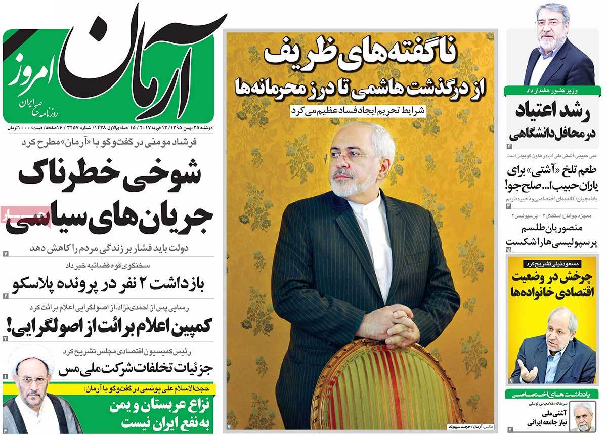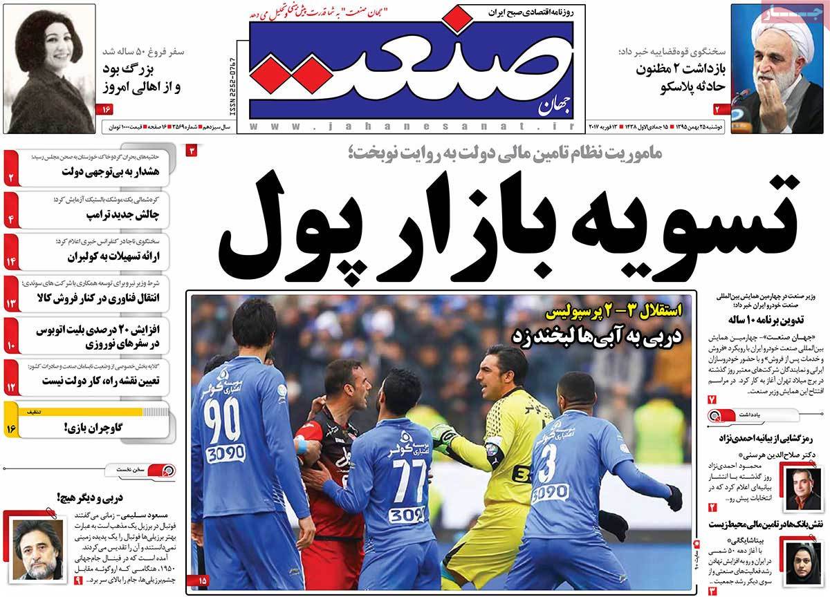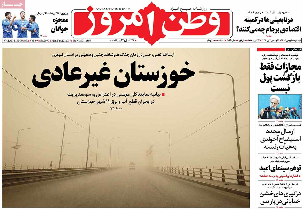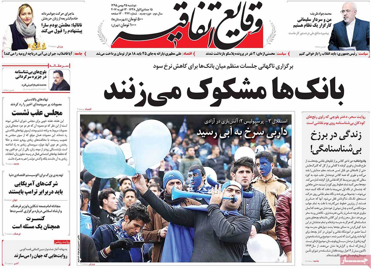 عناوین مطبوعات دوشنبه ۲۵ بهمن ۹۵