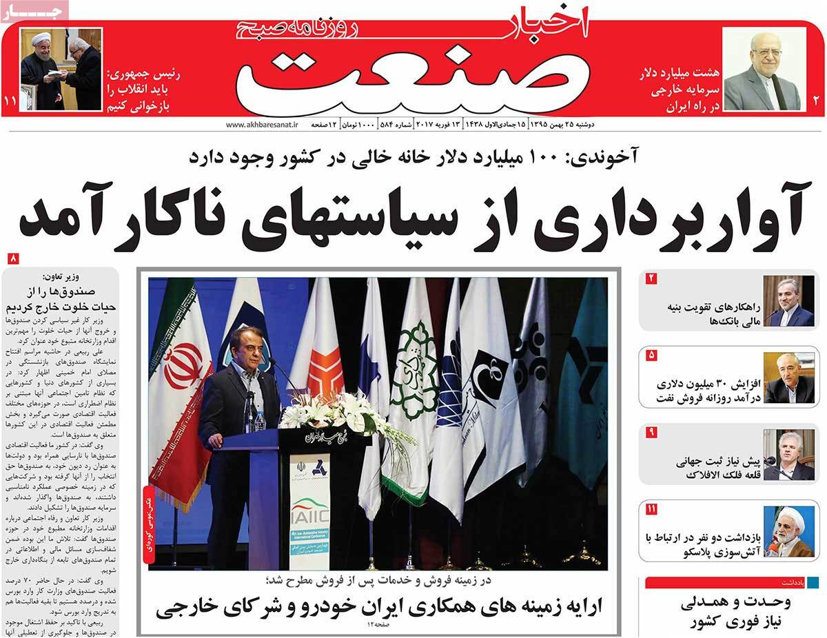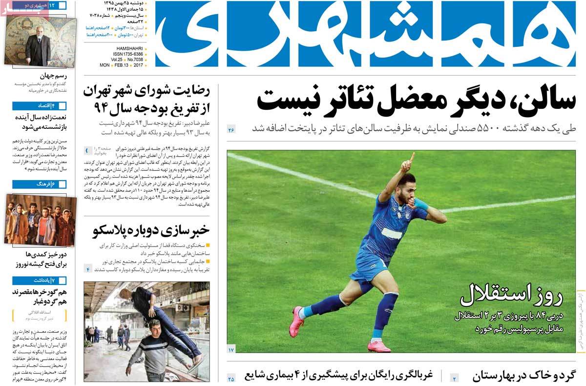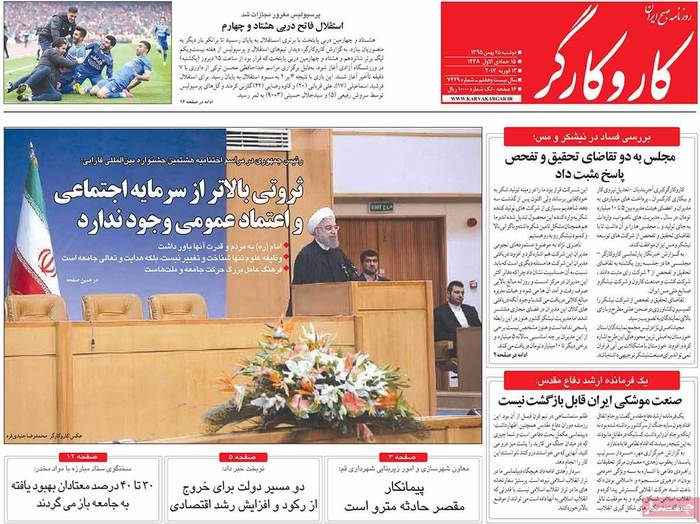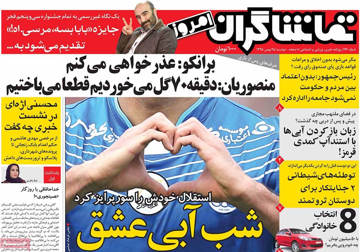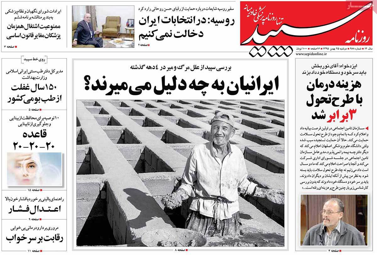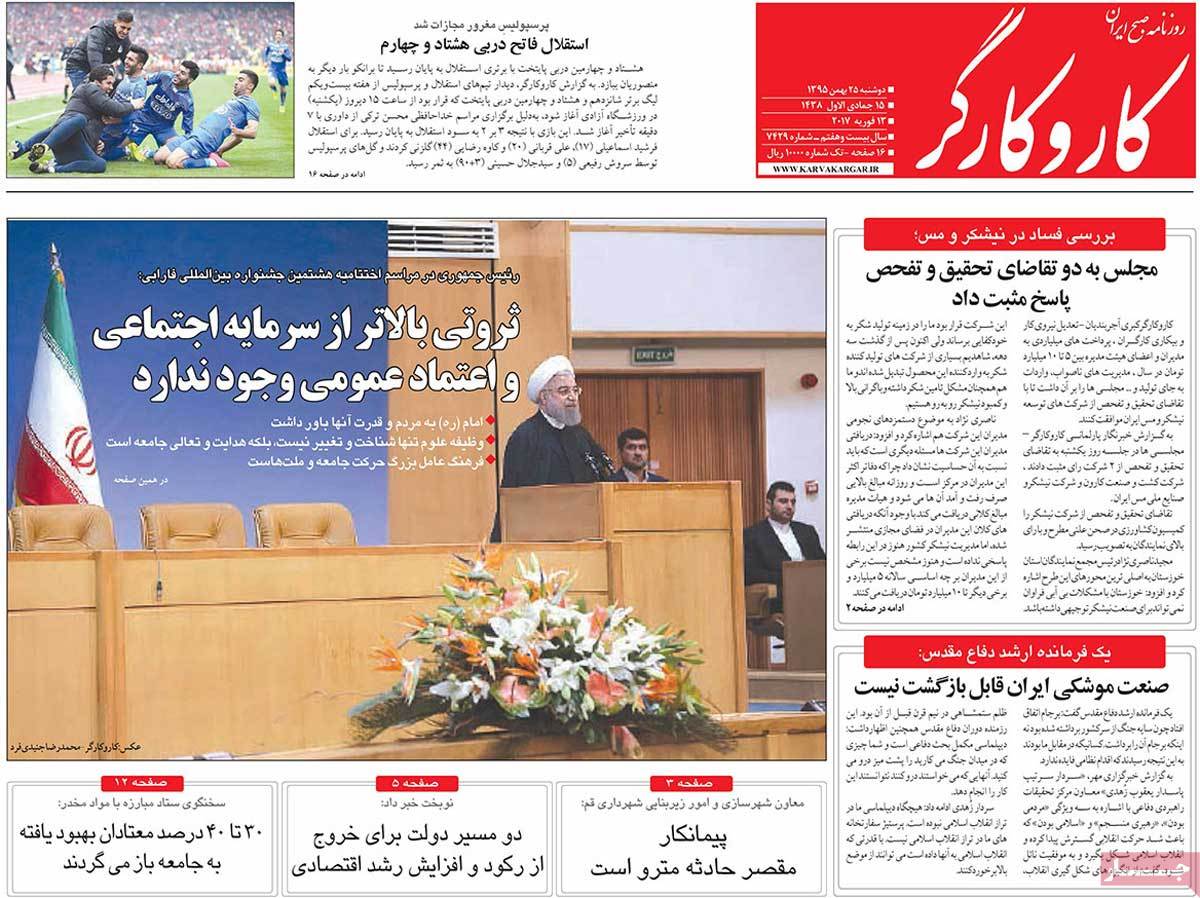عناوین مطبوعات دوشنبه ۲۵ بهمن ۹۵
