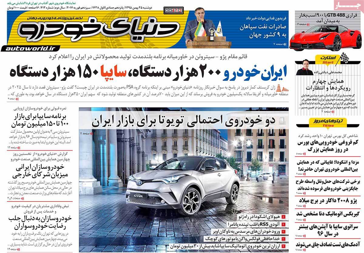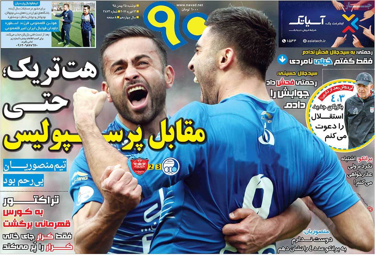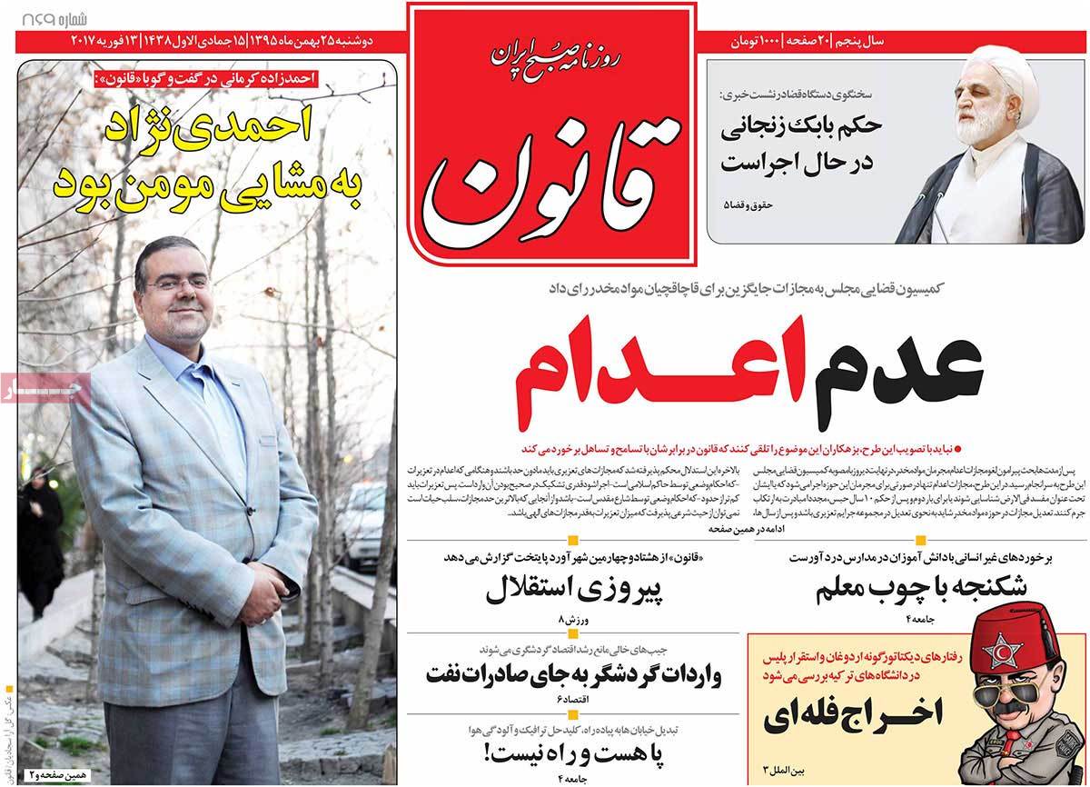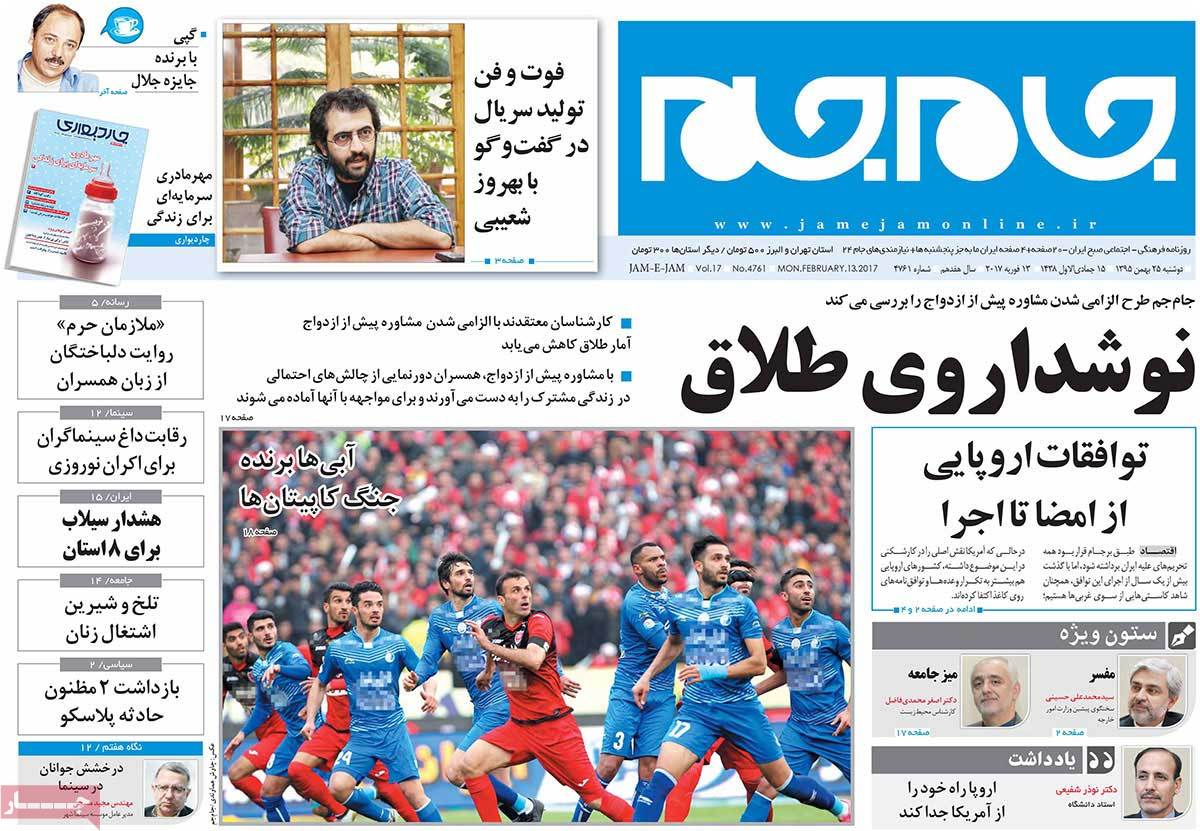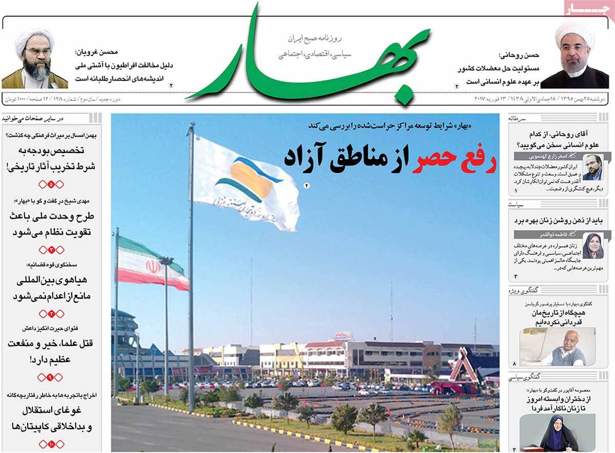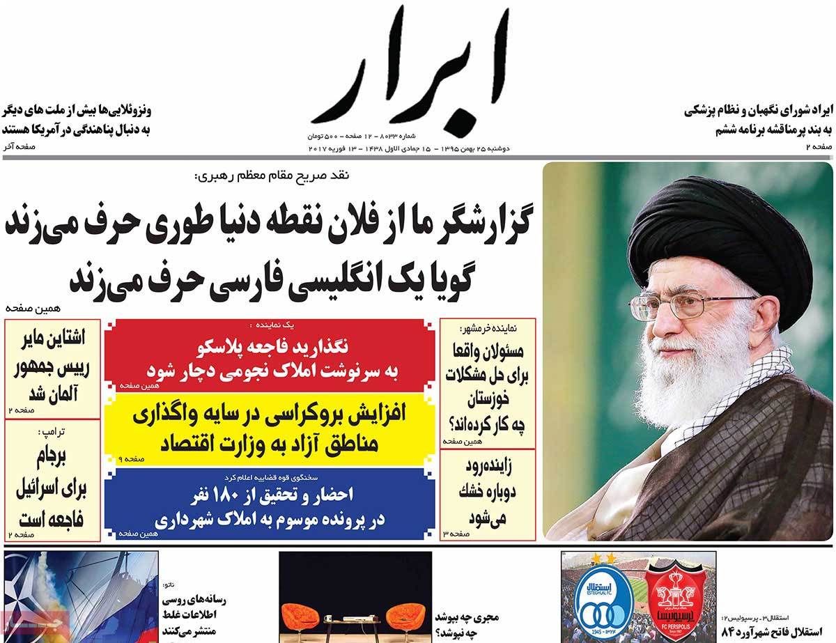 عناوین مطبوعات دوشنبه ۲۵ بهمن ۹۵