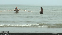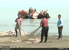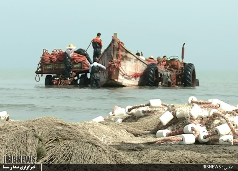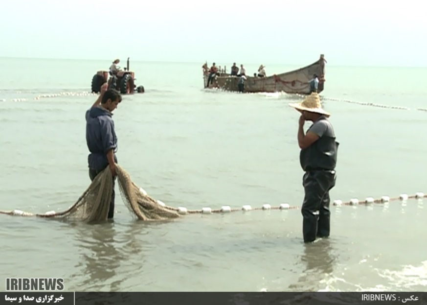پهن شدن تور صیادان گیلانی در پهنه دریای خزر