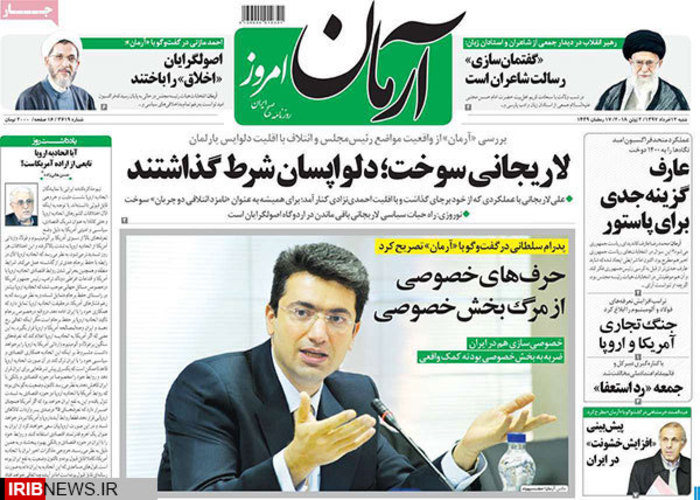 عناوین روزنامه های صبح امروز شنبه دوازدهم خرداد