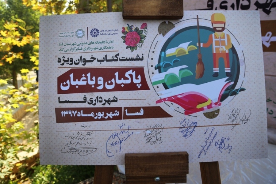در نشست کتابخوان پاکبان و باغبان در فسا از پاکبانان و باغبانان کتابخوان تجلیل شد.