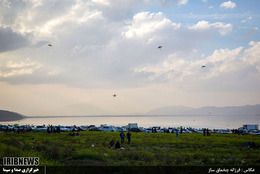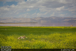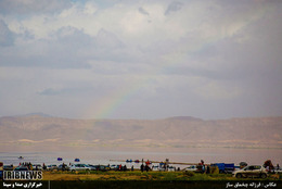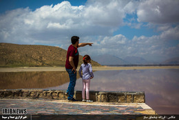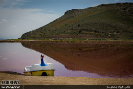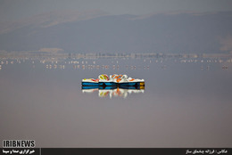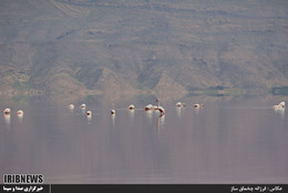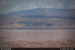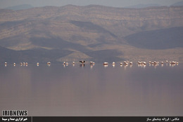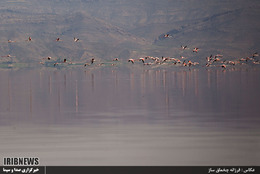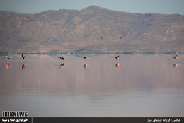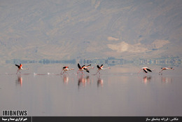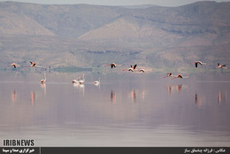 پرواز فلامینگوها بر فراز دریاچه مهارلوی شیراز