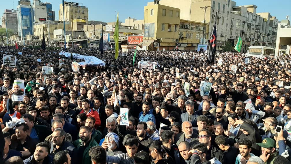 به گزارش خبرگزاری صدا و سیما مرکز خوزستان ، مردم مشهد شهیدان ایران ، دیار کارون در مراسم تشییع پیکر مطهر سردار سپهبد شهید سلیمانی به خروش آمدند و دریایی از عظمت آفریدند.
