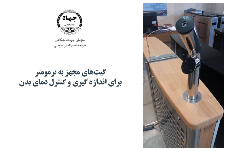 *طراحی و ساخت دستگاه ترمومتر برای کنترل دمای بدن روی گیتهای ورودیبا توجه به شیوع ویروس کووید ۱۹ و لزوم تشخیص به موقع افراد مشکوک برای حفظ سلامت جامعه، متخصصان سازمان جهاددانشگاهی خواجهنصیرالدین طوسی موفق به ساخت سیستم کنترل فرمان ورود به گیت تردد افراد شدند که از روی دمای بدن، ورود افراد را کنترل مینماید.