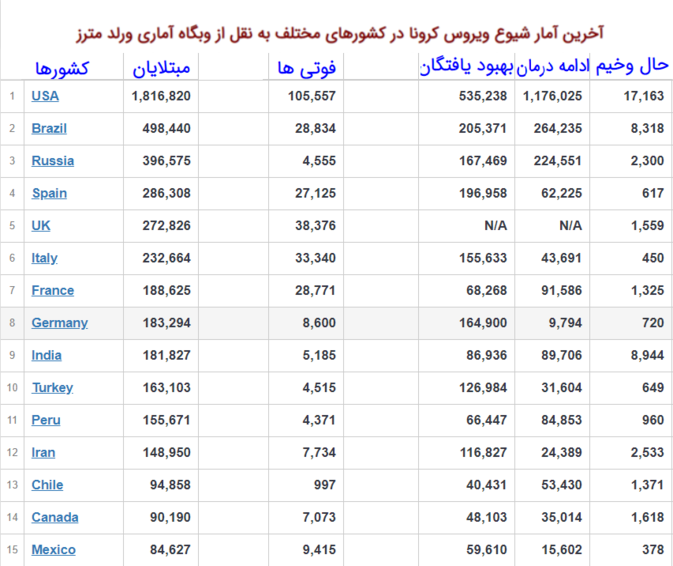آخرين اخبار کرونا در جهان
