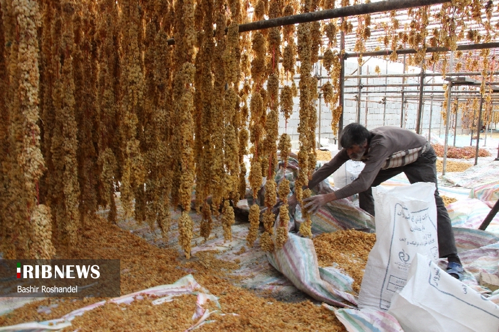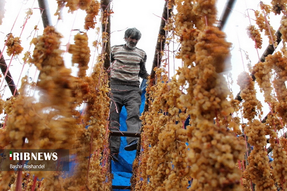کشمش به روش سنتی (شغار) در شیروان تهیه می شود.