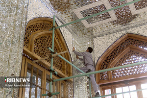 به گزارش گروه عکس خبرگزاری صدا و سیما؛ حاصل هنر آینه کاری، ایجاد فضایی درخشان و پر تلألو است که از بازتاب پی در پی نور در قطعات بی شمار آینه پدید می‌آید. در حرم امام رضا علیه السلام از شیوه‌های متنوعی از آینه کاری استفاده شده است. گچبری روی آینه که با نقاشی همراه است آینه تصویر نامیده می‌شود؛ استفاده از گچ و آینه را در تزئین رواق‌های دارالرحمه و دارالهدایه با به کارگیری طرح گره می‌توان مشاهده کرد.