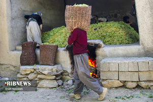 با آغاز برداشت انگور در شهریور ماه تولید کشمش به روش سنتی "بولآو " نیز آغاز میشود. در این روش سنتی باغداران روستای دولاب در استان کردستان برای تهیه کشمش، خاکستر چوب را با آب میجوشانند و بعد از سرد شدن در ظرف میریزند تا ته نشین شود، مادهای که به دست میآید، خوشاب نام دارد. انگورها را به آن آغشته و سپس انگور آغشته به خوشاب را بر پشت بام در مقابل نور خورشید قرار میدهند تا خشک شود؛ و باید برای خشک شدن انگورها، حدود ۱۵ روز در مقابل نور خورشید قرار گیرند. رسم سنتی بولاو از گذشته در این روستا اجرا میشود و روستای دولاب را به قطب کشمش منطقه تبدیل کرده است. روستای زیبای دولاب روستایی کوهستانی با بافت پلکانی و شگفتانگیز است که در ۴۰ کیلومتری شهر سنندج قرار دارد