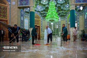 در آستانه ولادت حضرت ولیعصر (عج) مسجد مقدس جمکران توسط خادمین این مسجد غبار روبی و شست شو شد