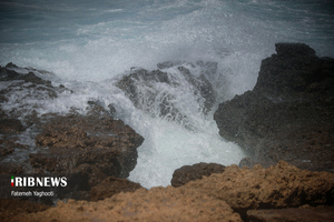 طبیعت زیبای موج و صخره در جزیره کیش
