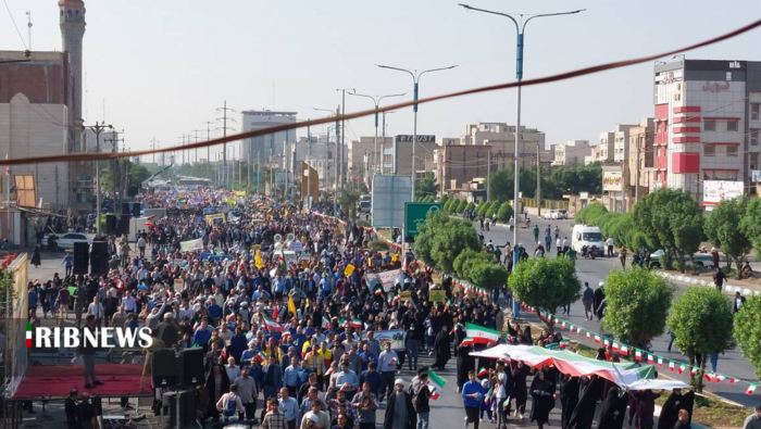 امروز و از ساعتهای اولیه صبح، مردم شهرهای مختلف استان خوزستان بار دیگر همبستگی و اتحاد خود را در دفاع از آرمانهای انقلاب و حفظ ایران اسلامی نشان دادند و با سر دادن شعار مرگ بر اسراییل و مرگ بر آمریکا انزجار خود را از «شیطان بزرگ» فریاد زدند.