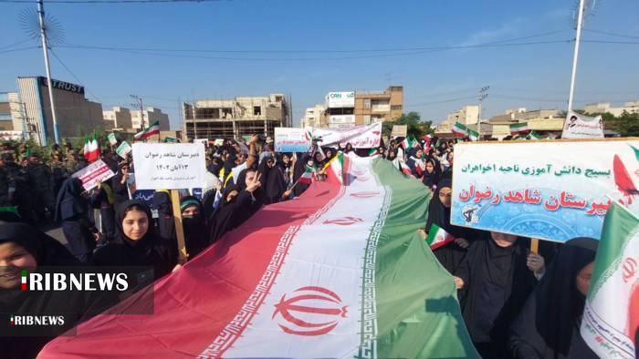 راهپیمایی گسترده یومالله ۱۳ آبان صبح امروز با حضور پرشور مردم و دانشآموزان سراسر خوزستان برگزار شد.
