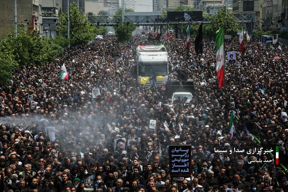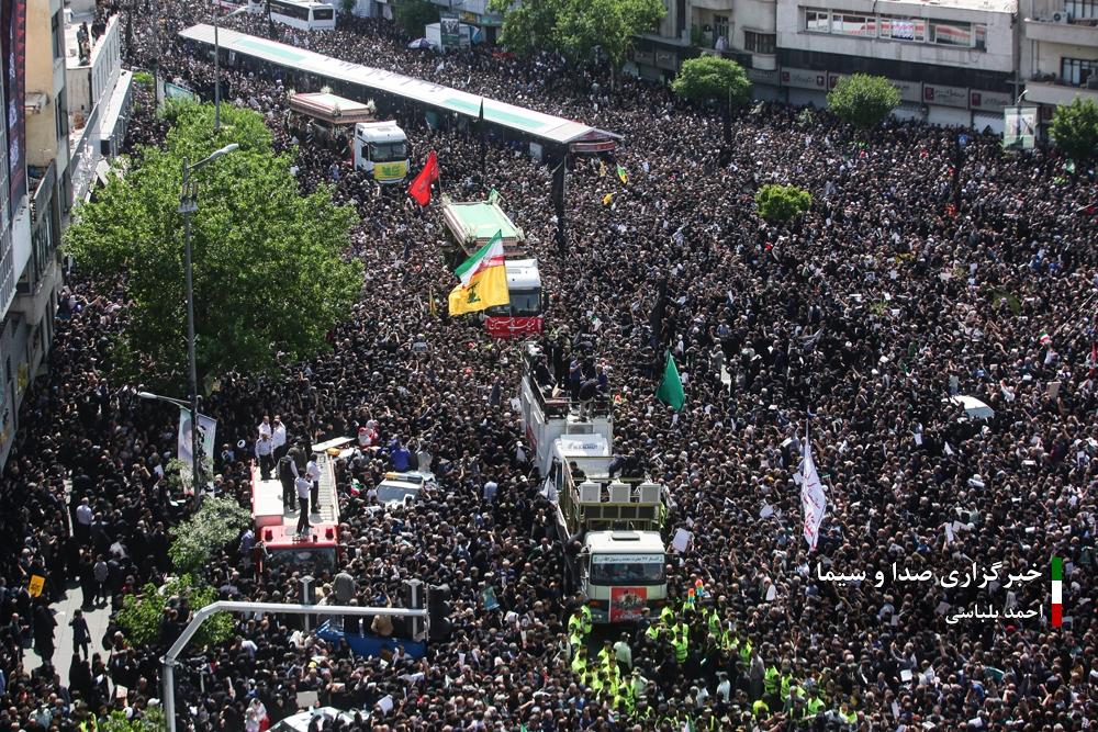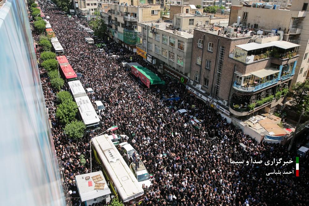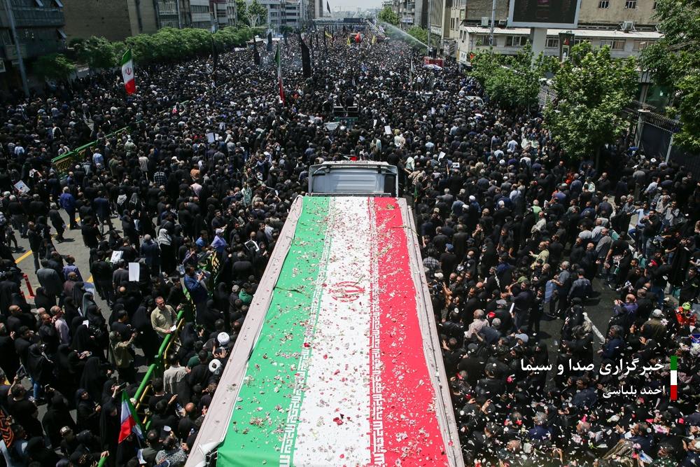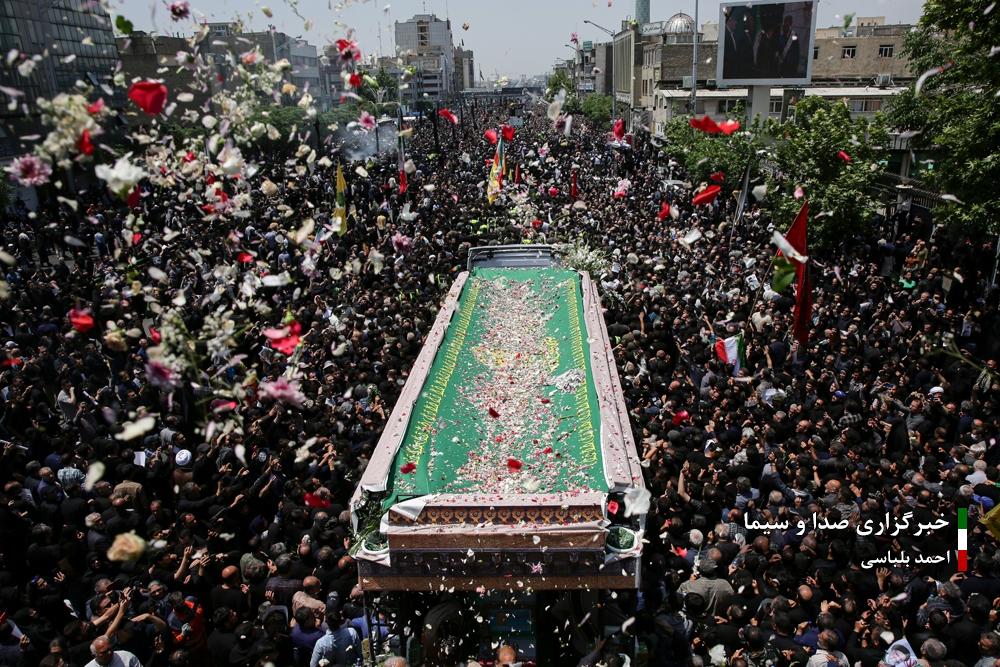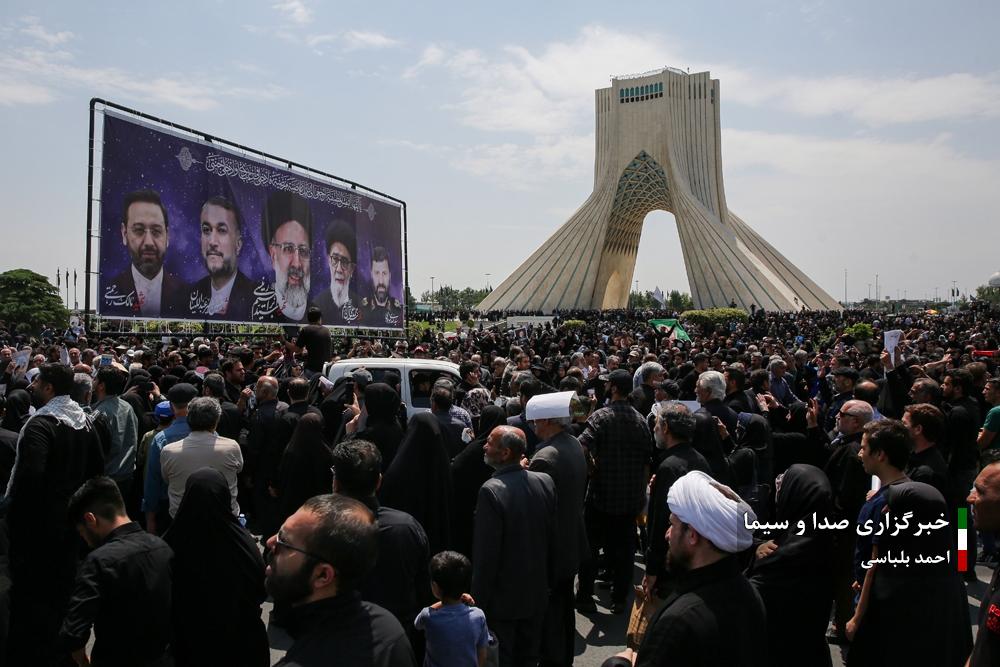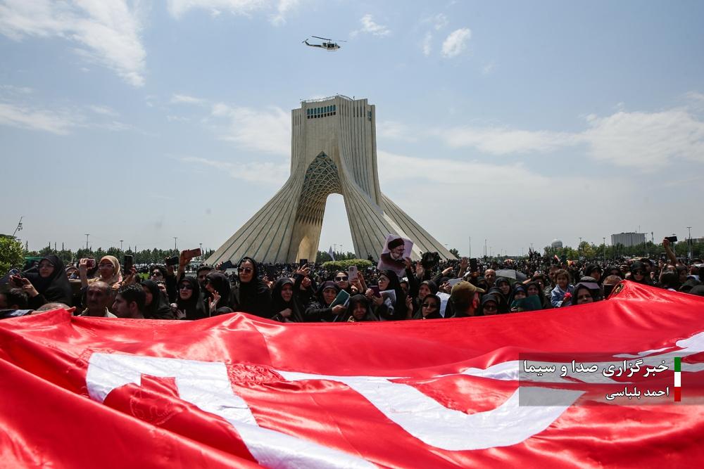 مراسم تشییع پیکر رئیس جمهور شهید و همراهان ایشان، در تهران انجام شد. مردم پایتخت از ساعات ابتدایی صبح امروز ۲ خرداد ۱۴۰۳ برای بدرقه شهدای خدمت به خیابانها آمدند. موج عظیمی از این جمعیت برای اقامه نماز به امامت مقام معظم رهبری به سمت دانشگاه تهران حرکت کردند و بخش دیگر مردم هم در مسیر به سمت میدان آزادی مستقر شدند.