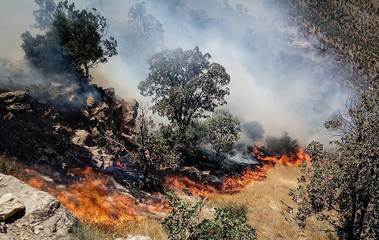 تلاش برای مهار کردن آتش در منطقه منگره اندیمشک ادامه دارد .