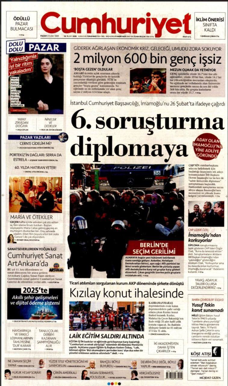 مهمترین عناوین روزنامههای امروز ترکیه