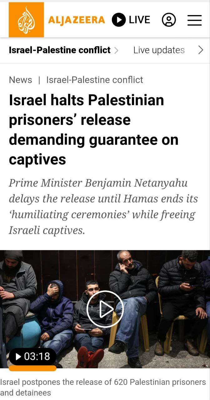 اسرائیل اعلام کرد که آزادی صدها اسیر فلسطینی را تا زمانی که حماس شرایط آنها را برآورده کند به تعویق میاندازد. این اقدام شکنندگی توافق آتش بس غزه را برجسته میکند.