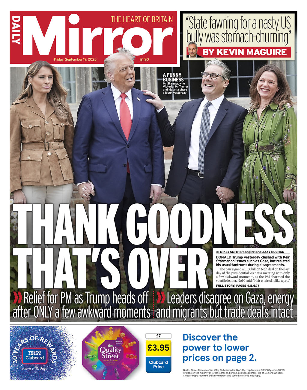 - خداروشکر که تمام شد؛ آسودگی خاطر برای نخستوزیر؛ ترامپ پس از تنها چند لحظهٔ ناخوشایند، کشور را ترک کرد.