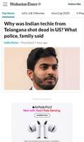 - یک کارشناس فنی اهل تلانگانا در آمریکا به ضرب گلوله پلیس کشته شد، خانوادهاش از وزارت امور خارجه درخواست کمک کردند. محمد نظامالدین، متخصص نرمافزار، پس از ترفیع به کالیفرنیا نقل مکان کرده بود