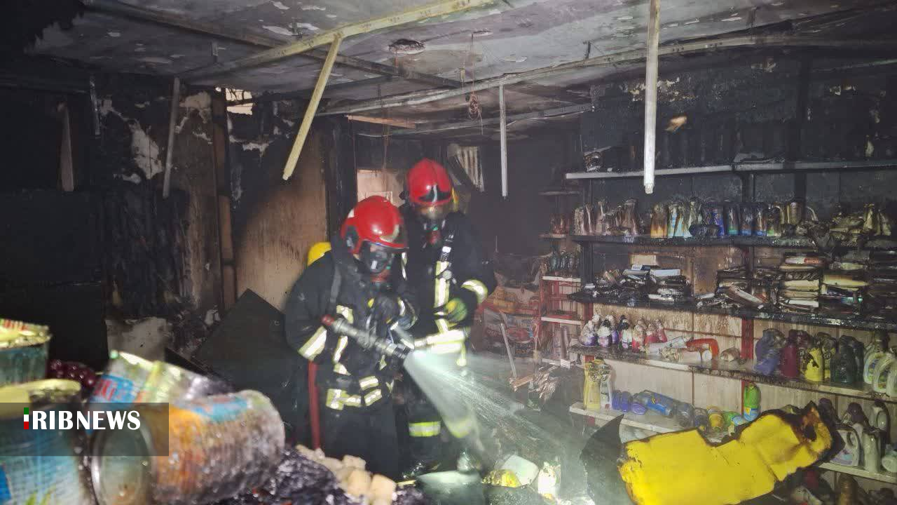 مهار حریق یک فروشگاه مواد غذایی در مشهد