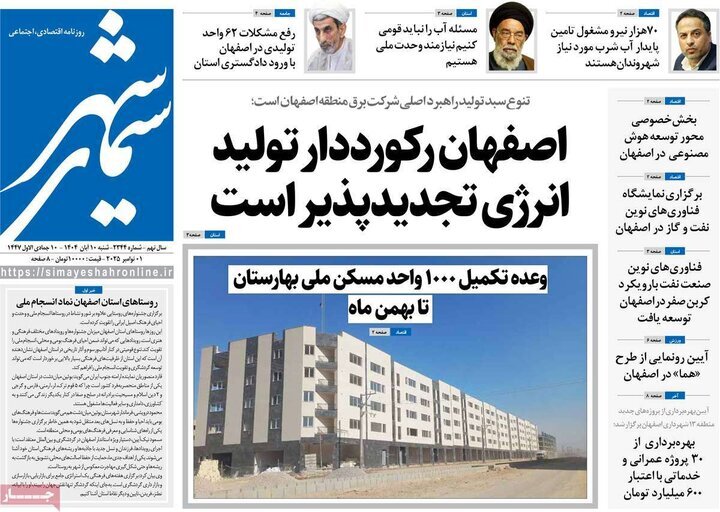 صفحه نخست روزنامه های اصفهان(دهم آبان ۱۴۰۴)