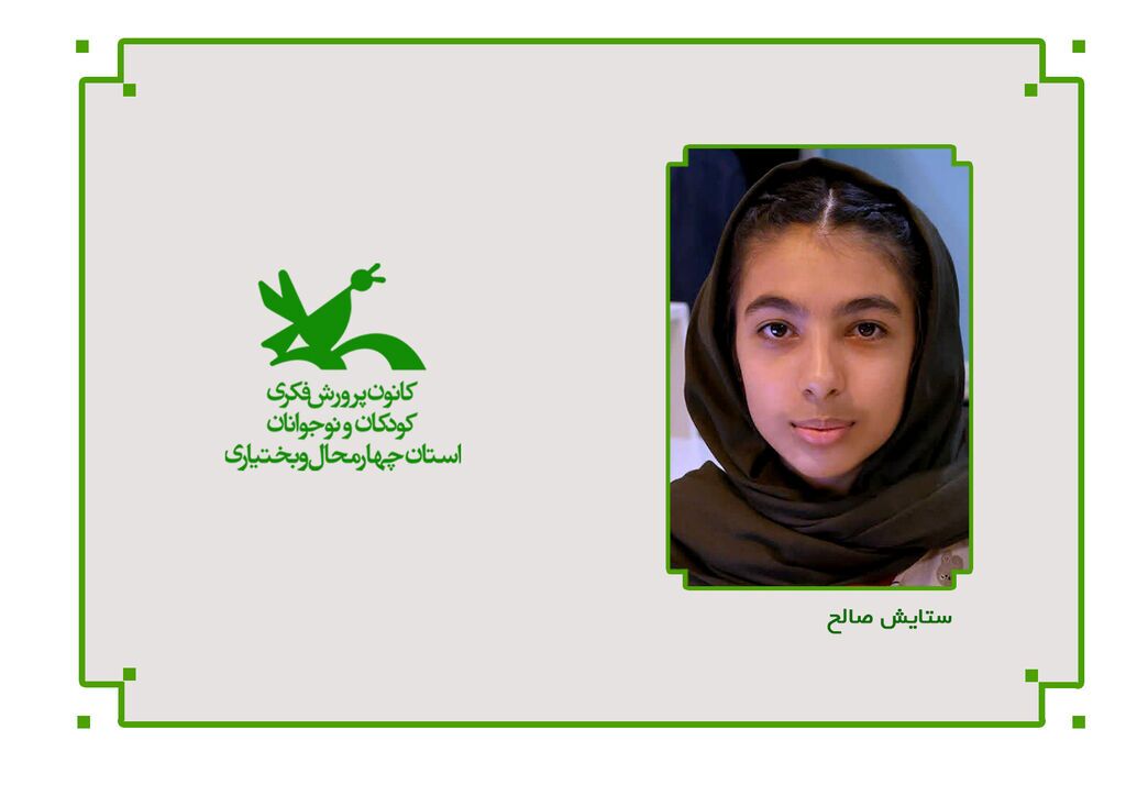 به گزارش خبرگزاری صداوسیما مرکز چهارمحال و بختیاری،ستایش صالح از اعضای فعال کارگاه‌های شعرسرایی مرکز فرخ‌شهر، با ارائه اثری خلاقانه و کودک‌محور توانست نظر گروه داوران جشنواره را جلب کند و در جمع برترین‌های این دوره قرار گیرد.