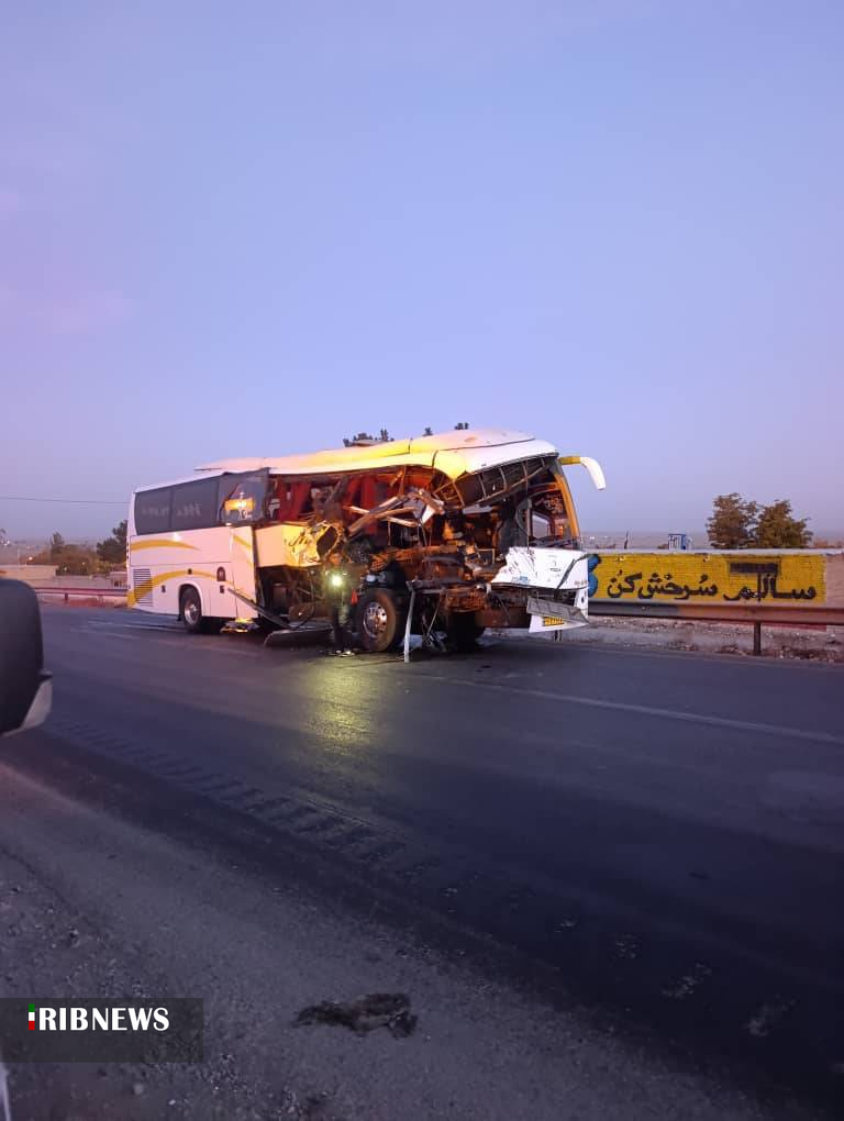 در این حادثه اتوبوس مسیر اصفهان به مشهد با ۱۱ سرنشین از سمت راست به یک دستگاه تریلی برخورد کرد .