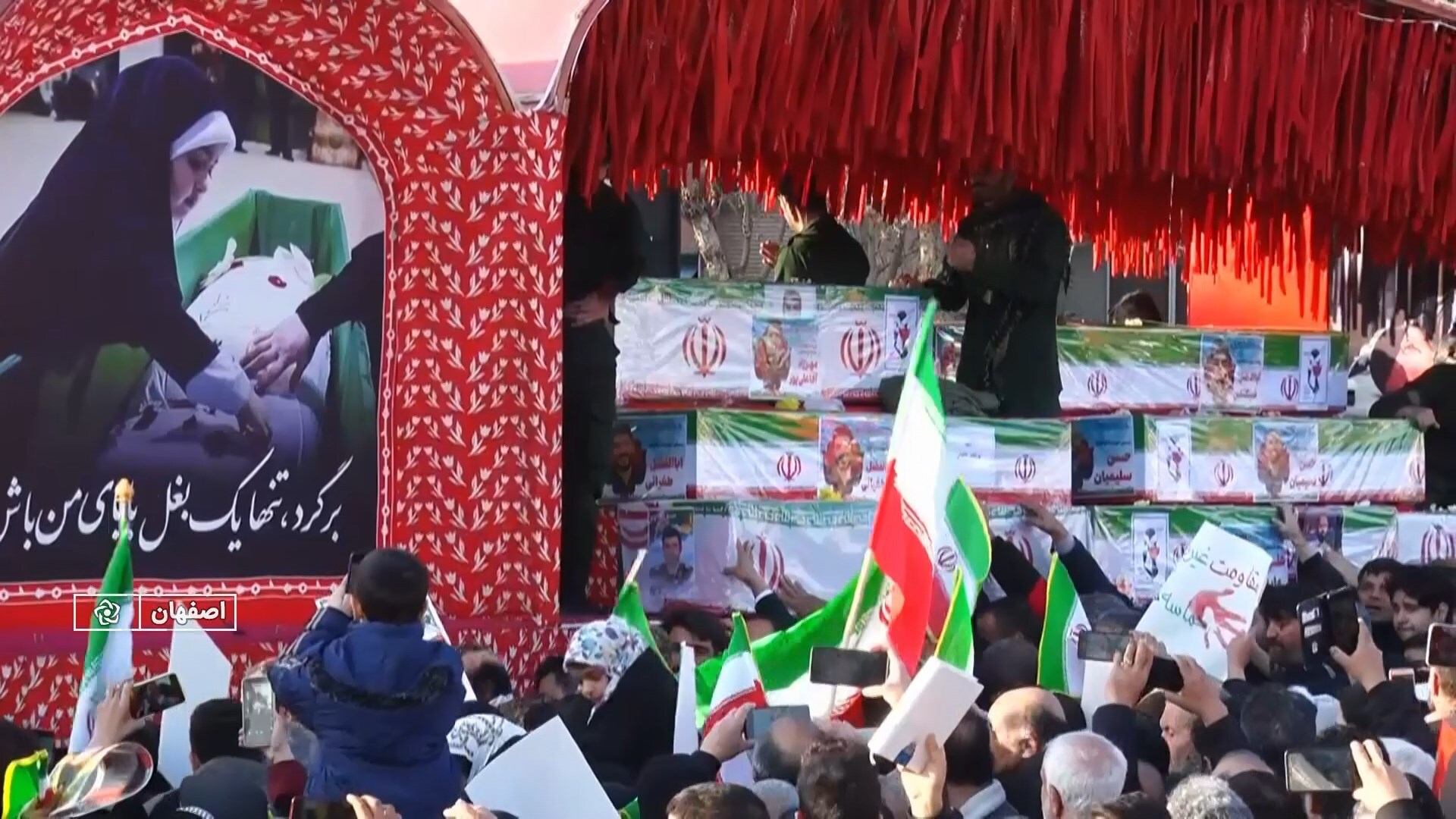 تشییع پیکرهای شهدای حملات تروریستی اخیر در اصفهان همزمان با اجتماع بزرگ مردمی در محکومیت اقدامات تروریستی عوامل آمریکایی ـ صهیونیستی در اصفهان برگزار شد.